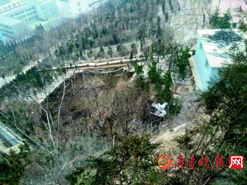 2015年12月22日早上,有市民发现济南山体坍塌:位于济南二环东路东侧的燕翅山发生山体坍塌事故,出现一处深约10米的深坑。坍塌断层可以看到,填方的土层有大量的塑料袋。