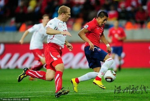 在疯子教练贝尔萨执教下,智利国家队在本届世界杯上大打攻势足球,而身披7号的右边锋桑切斯是队中的一大亮点。身高仅有168厘米的桑切斯盘球时脚下频率非常快,经常在比赛中上演连过数人的好戏,让球迷们大呼过瘾。不过也有专家认为桑切斯的踢球风格很像刚出道时的C罗,还需要进一步加强团队配合意识。而桑切斯本人也表示,自己非常乐意象C罗一样,加盟曼联聆听弗格森教练的教诲。