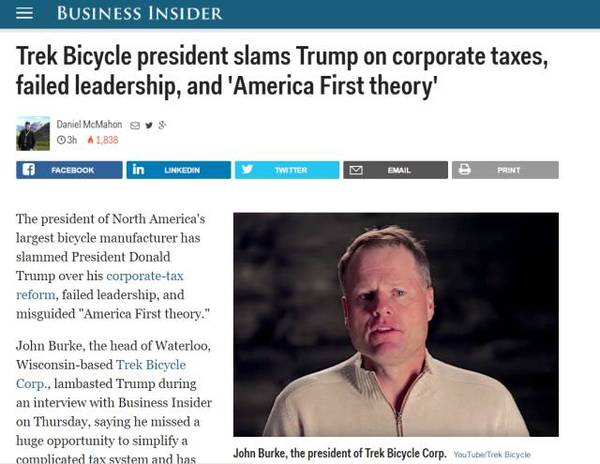 另外,在企业家方面,美国《商业内幕》网站采访了一位美国本土的企业家——美国崔克自行车的主席John Burke。
