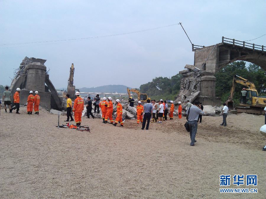 江西广昌河东大桥坍塌 江西抚州市广昌县河东大桥坍塌事故现场