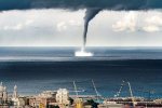 近日,意大利热那亚海滨有人拍到水龙卷,天空中乌云密布,海面上一道巨大的水龙卷把乌云和水面连接。水龙卷是因为龙卷风在海面生成,卷吸着海水形成巨大水龙卷。